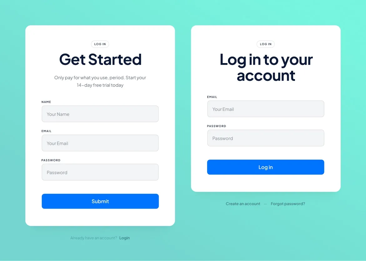 The template does not include any code for signing up, logging in, creating an account, or forgot a password.